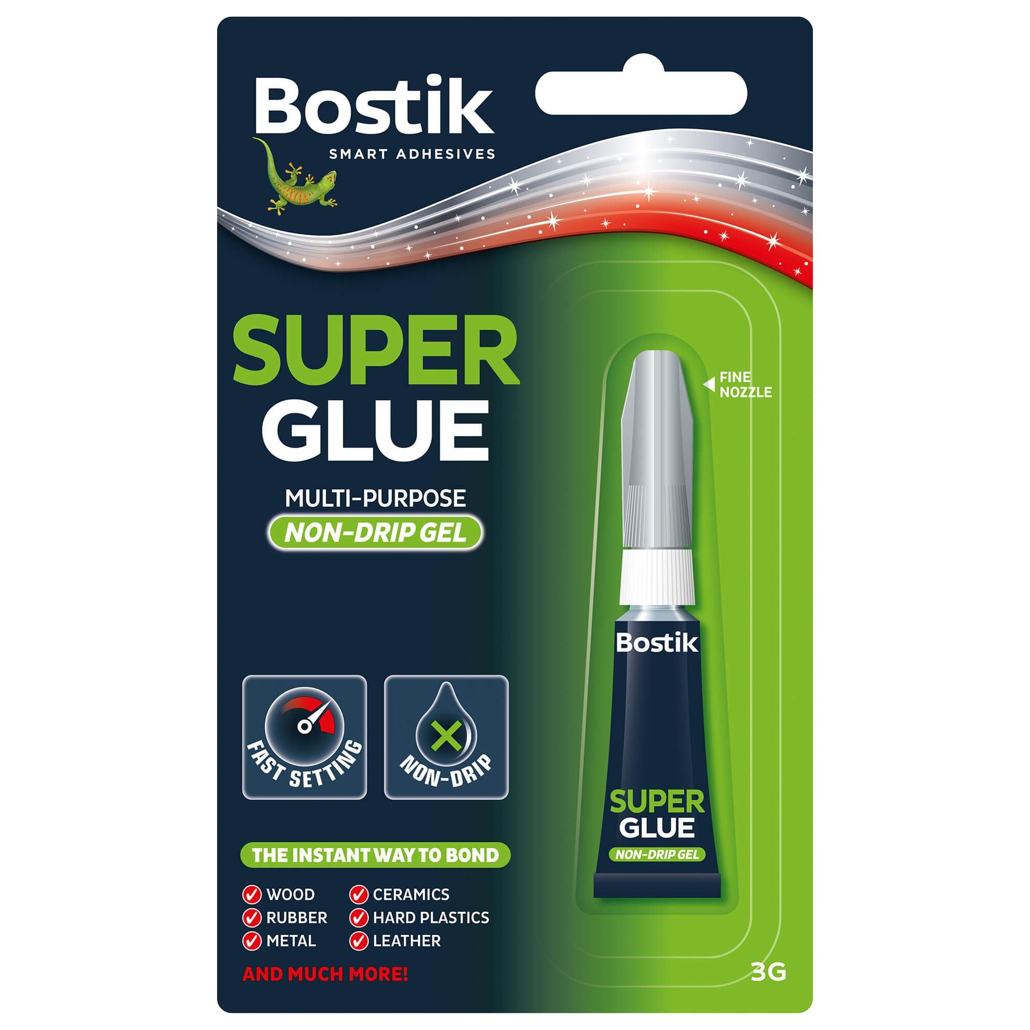 • Suitable for sticking and fixing a wide variety of materials including wood, china, hard plastics, rubber, laminates metals (will not work on soft plastics such as polythene vinyl or absorbent surfaces such as fabric or paper; do not use to repair items which will hold hot liquids, food or drinks; not suitable for sticking rear view mirrors to windscreens) • Easy to use non drip gel formula super glue • 3g non drip gel tube • Comes in a handy easy to use tube with a re-sealable lid safety cap • Gives a permanent strong bond in seconds • Manufacturer part number / Barcode: 806153 / 5000399002192